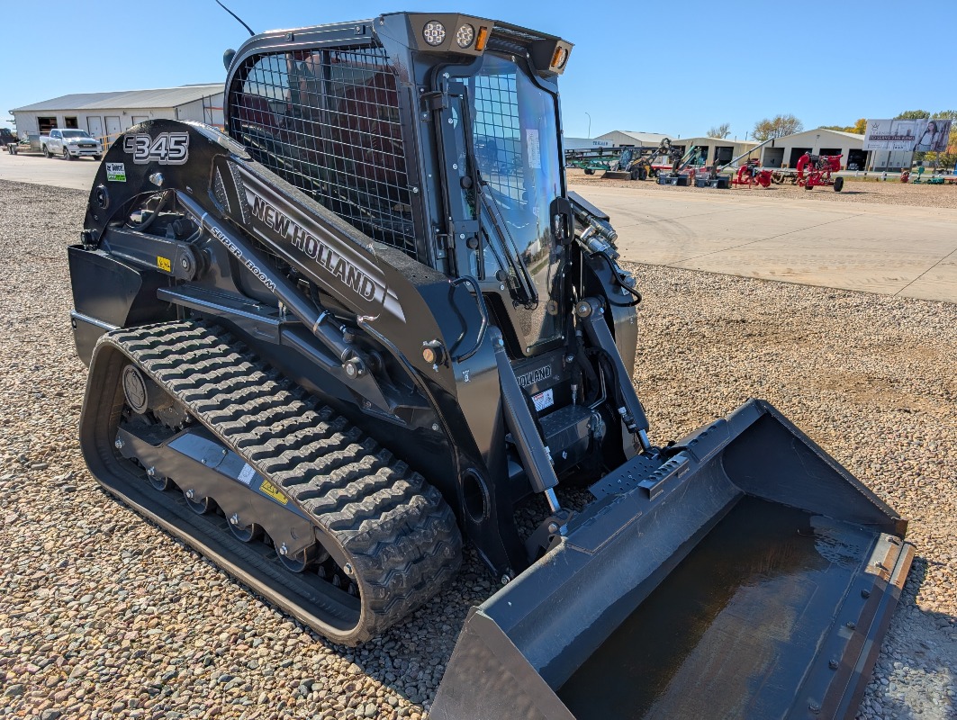 2023 NEW HOLLAND C345 CTL, SPECIAL EDITION BLACK W/ CUSTOM DECALS, ONLY 58 HRS, CAB/HEAT/AIR, JOYSTICK CONTROLS, 2 SPEED, POWER QUICK-TACH, RADIO, REAR VIEW CAMERA, HIGH FLOW, SELF LEVELING, 17.7" ZIG-ZAG TRACKS, 84" DIRT BUCKET